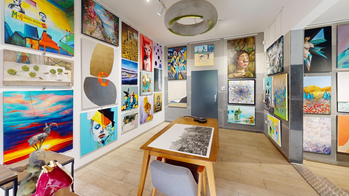 Zapraszamy Państwa również na WIRTUALNY SPACER po ekspozycji. Wirtualne zwiedzanie da Państwu możliwość zobaczenia prac w przestrzeni galeryjnej, bez konieczności oglądania wystawy na żywo. Świetnie też służy przypomnieniu ekspozycji tym z Państwa, którzy wcześniej odwiedzili nas osobiście.