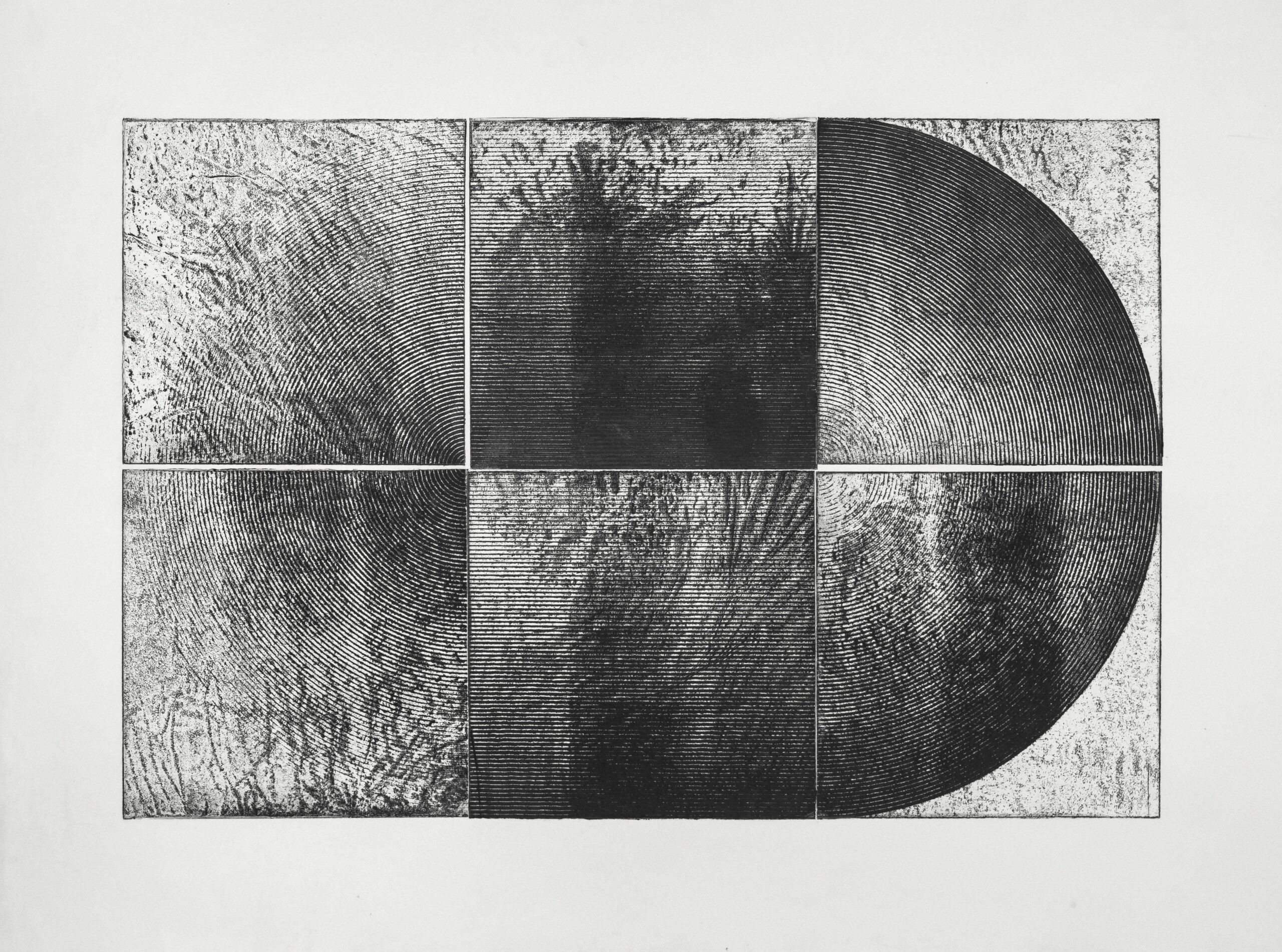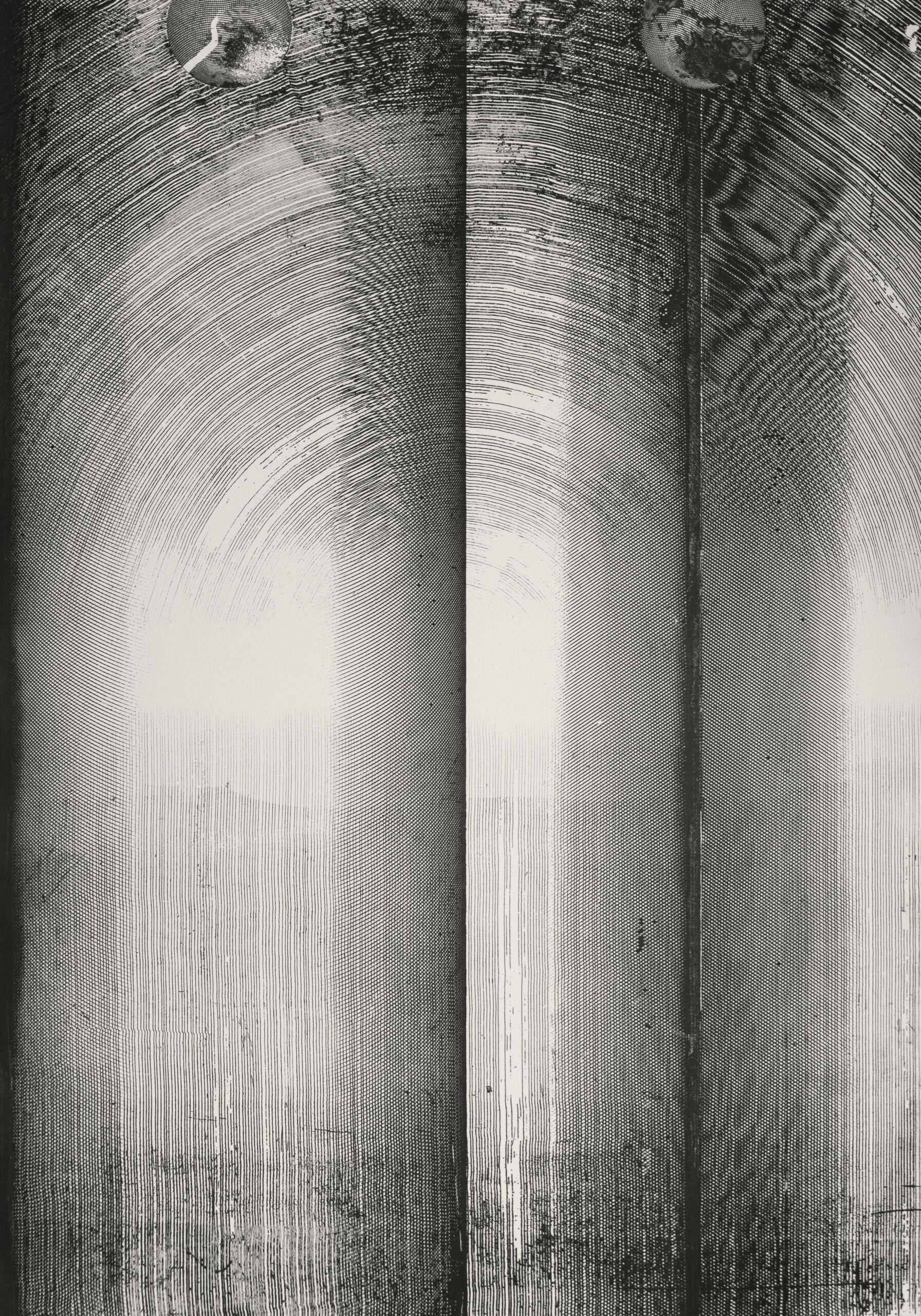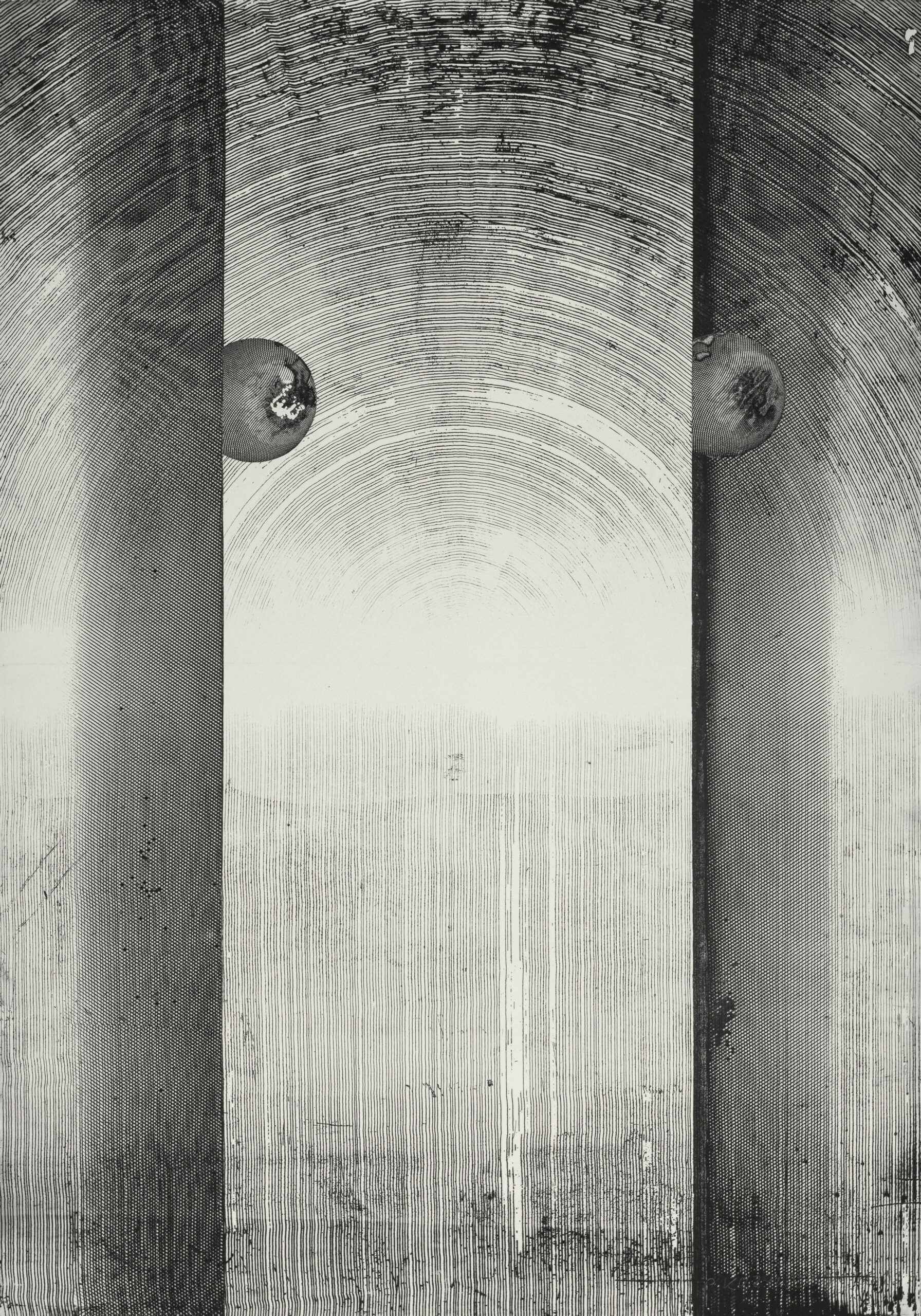 akwaforta, akwatinta, papier, 198 × 69 cm; część 1. sygn. u góry: P. Krzywdziak 2017, część 2. sygn. u dołu: P. Krzywdziak 2017, 5/20