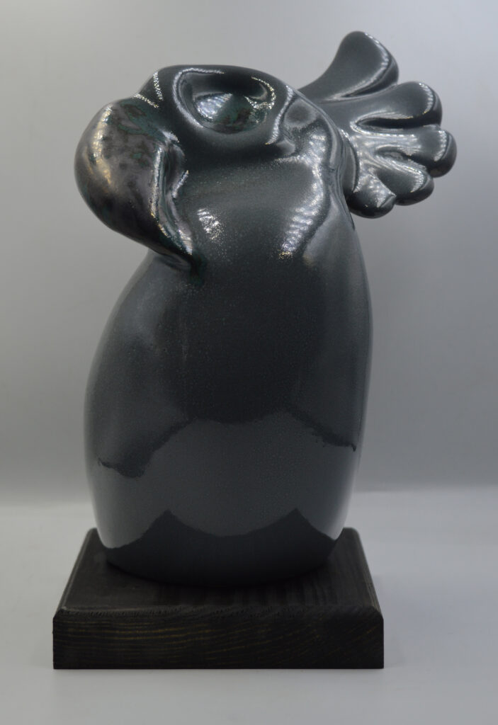 rzeźba szkliwiona, ceramika, 29 x 17 x 14 cm, pieczątka logo "ROKO" od środka rzeźby