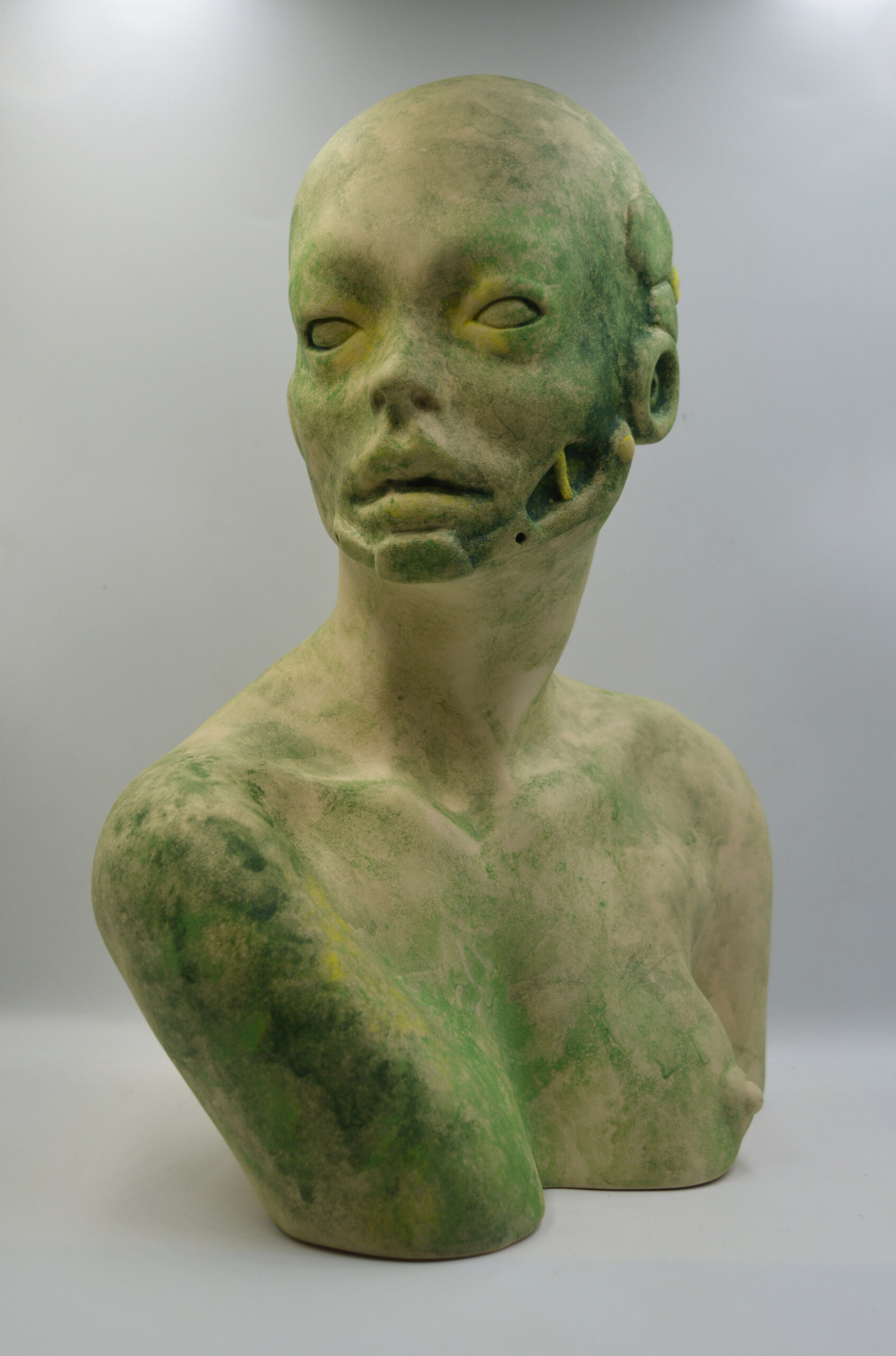 rzeźba ceramiczna, seledynowa, 32 x 12 x 13 cm, sygn. od środka: logo ROKO
