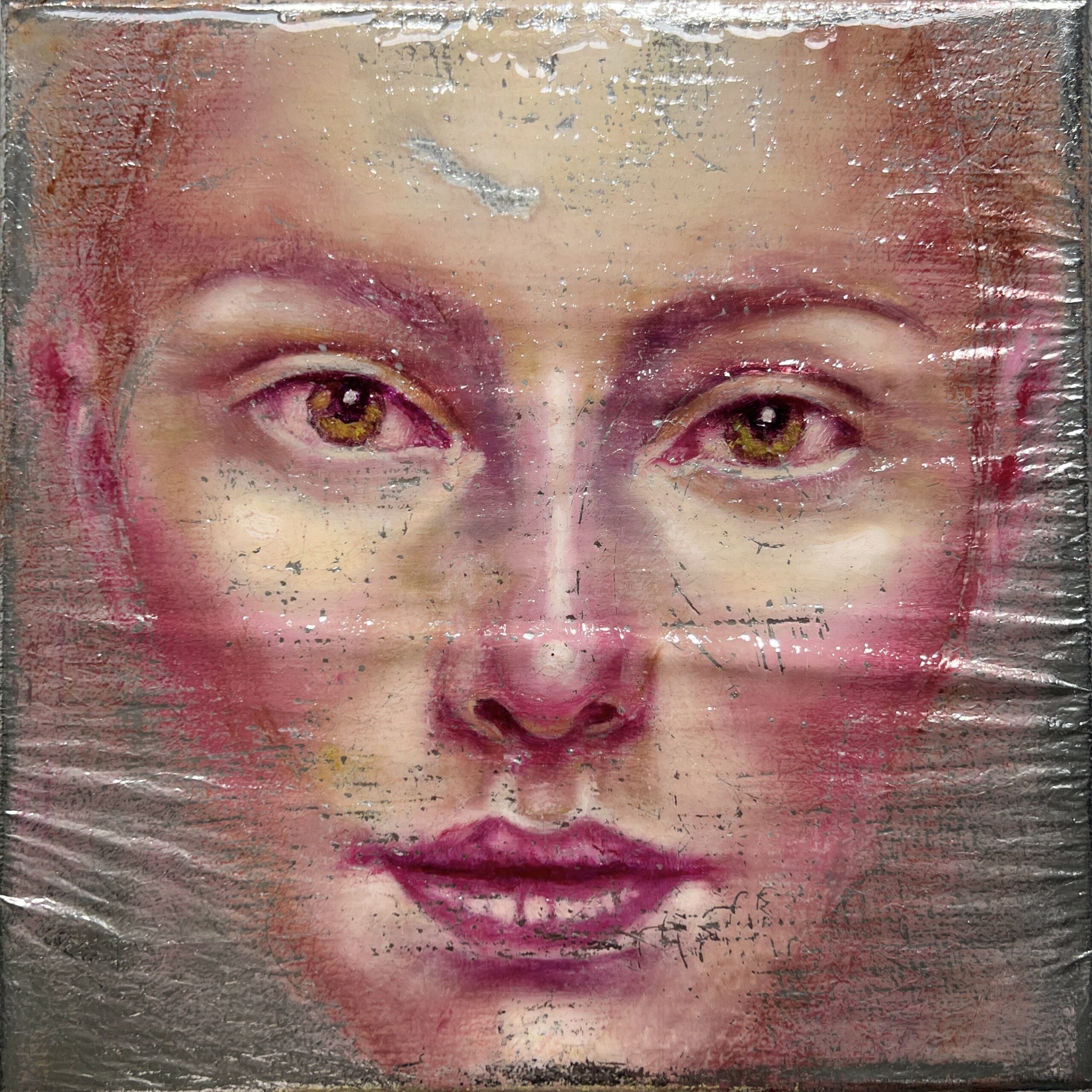 technika mieszana (olej, folia, żywica), płótno, 20 x 20 cm, sygn. na odwrocie